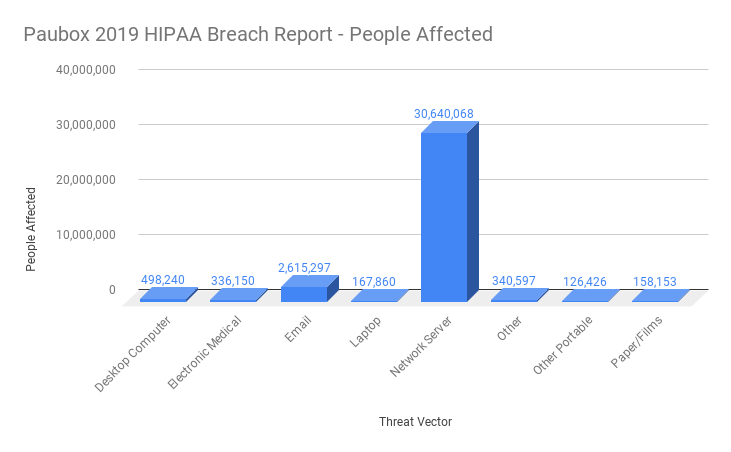 The full summary of HIPAA breach data for 2019 can be found here (Google Sheets).Caveats