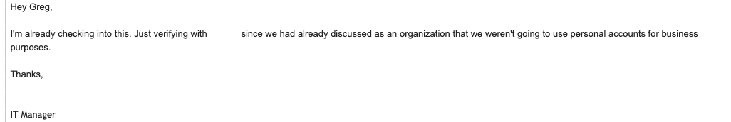 During a check-in with our customer in Illinois this week, we learned they are using ExecProtect to also enforce corporate email policy.