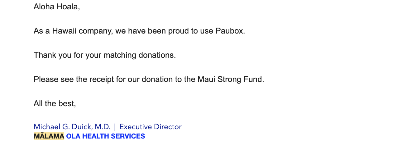 See also: Continued Maui wildfire relief - Paubox matching donation program