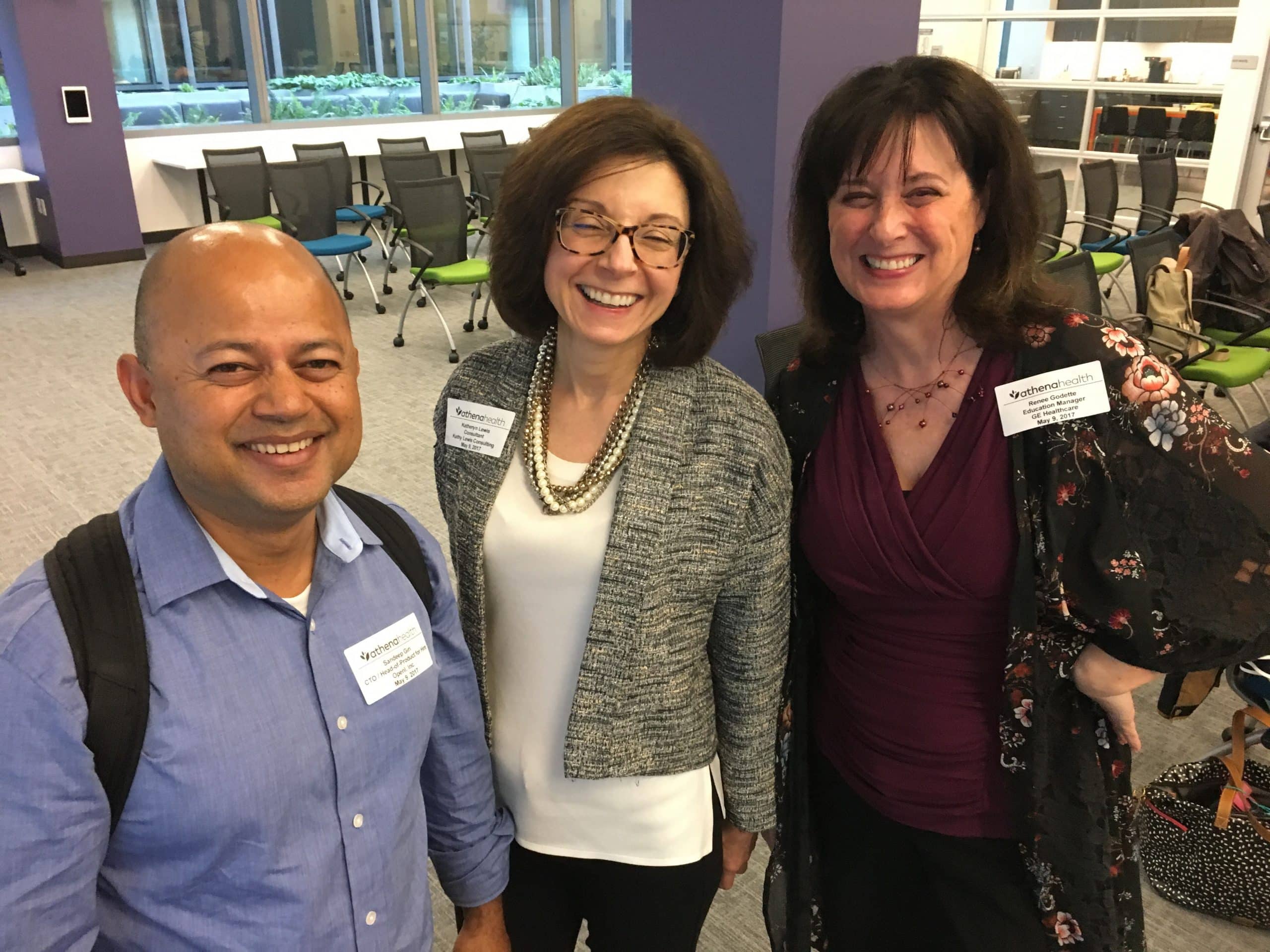 A few minutes after catching up with Niko, he introduced me to Sandeep Giri. We quickly began chatting about our HIPAA Compliant Email solution and how it could potentially help his clients. We also chatted about our new product, Paubox Suite Premium, which I am fired up about. A few minutes later, I met Renee Godette of GE Healthcare. I snapped a pic of them and Renee's friend (I didn't get her business card). Shortly afterward, the event started.