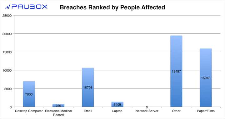 - Paper/Films breaches ranked second with PHI of 15,946 people breached.