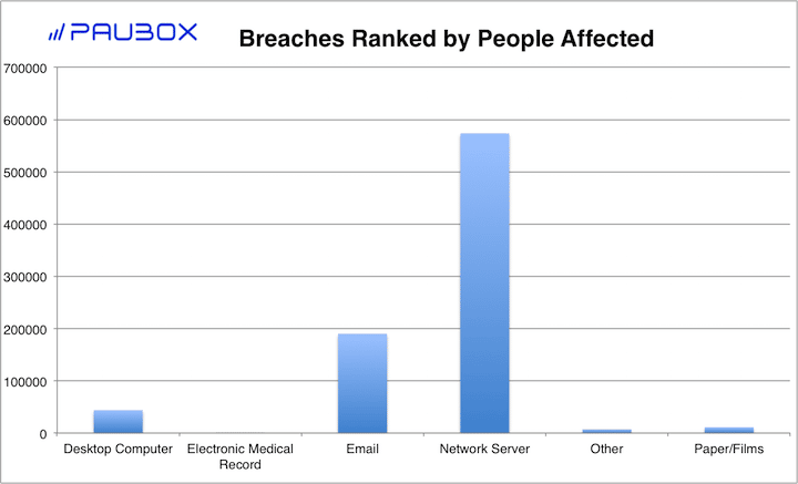 - Paper/Films was the third lowest type of breach as ranked by people affected with 10,986.