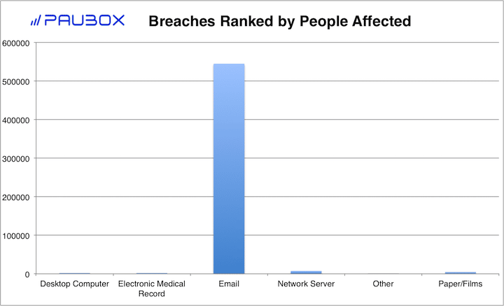 - Email breaches once again ranked the highest with 545,010 people's PHI hacked or stolen in August. This is the second consecutive month Email took the top spot in this category.