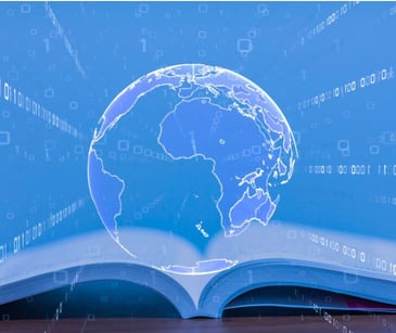 AI globe logo over keyboard