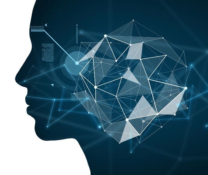 ai graphic head on cityscape